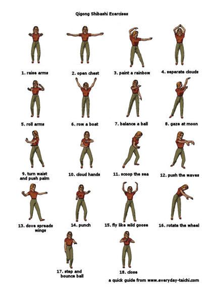 Qigong circulates the blood without taxing the lungs. Whenever I do forms like the Taiji (Taichi) Qigong Shibashi, or 18 Forms shown in this video, I can feel this. My hands feel toasty and my whole body warm and full of energy. This is good news for someone like myself, who has never been drawn to things like running or aerobic sports! This form in particular is also calming and meditative. Its gentle movements flow continuously from one to the other in a relaxing, soft yet powerful way.